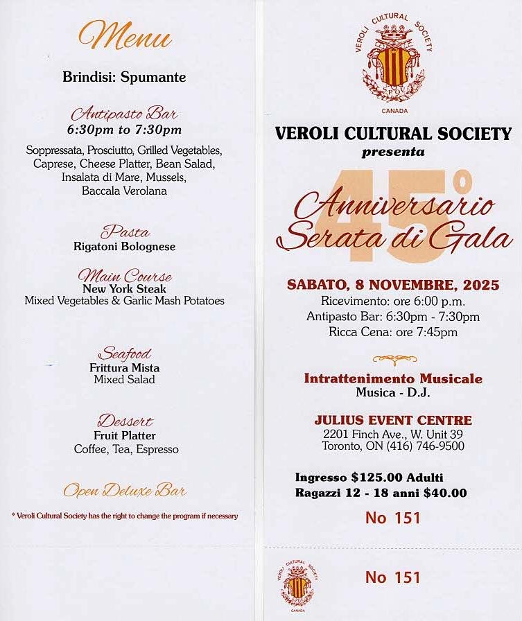 Veroli Society Reserve your table now 45th annual dinner You and members of your club are invited to the 45th Anniversary of the Veroli Cultural Society Check below for information Hope to see you there! thumbnail